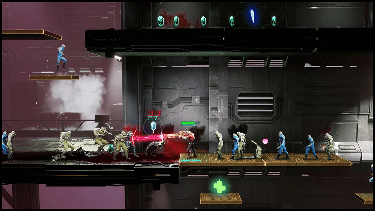 Adrenaline Injection — 2,5D-экшен на выживание с элементами платформера и рогалика. Является бесплатной версией находящейся в разработке игры Adrenaline Rampage. Геймерам доступны 2 персонажа, 2 уровня сложности, 20 миссий, 32 навыка и 3 босса. Страница в Steam.