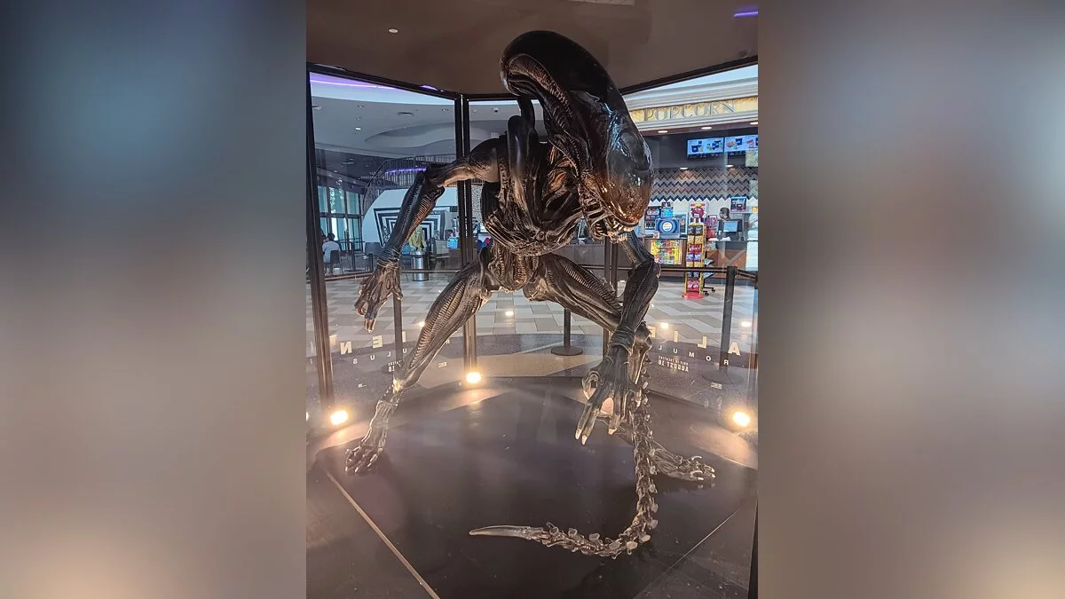 Рекламная кампания нового «Чужого» не ограничится одними VHS-кассетами. Как сообщают очевидцы, в одном из лос-анджелевских кинотеатров уже установили полноразмерную статую ксеноморфа.