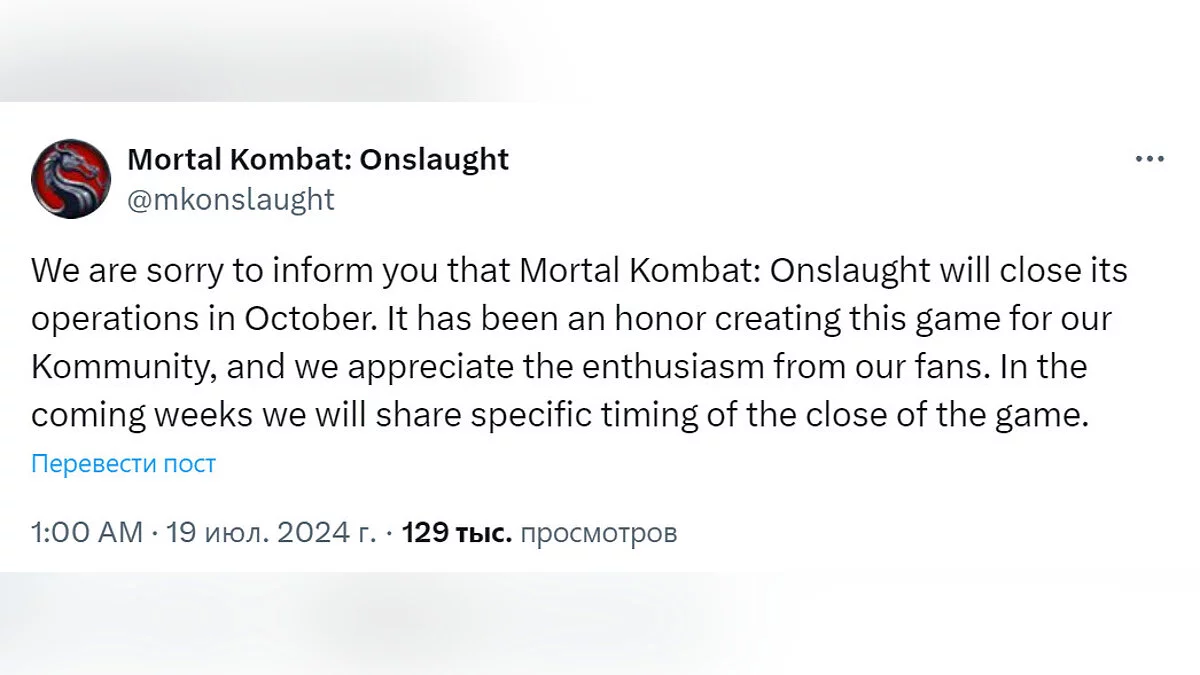Студия NetherRealm объявила о закрытии своего подразделения, ответственного за мобильные игры, и будущем отключении серверов Mortal Kombat: Onslaught. Игра перестанет работать в октябре.