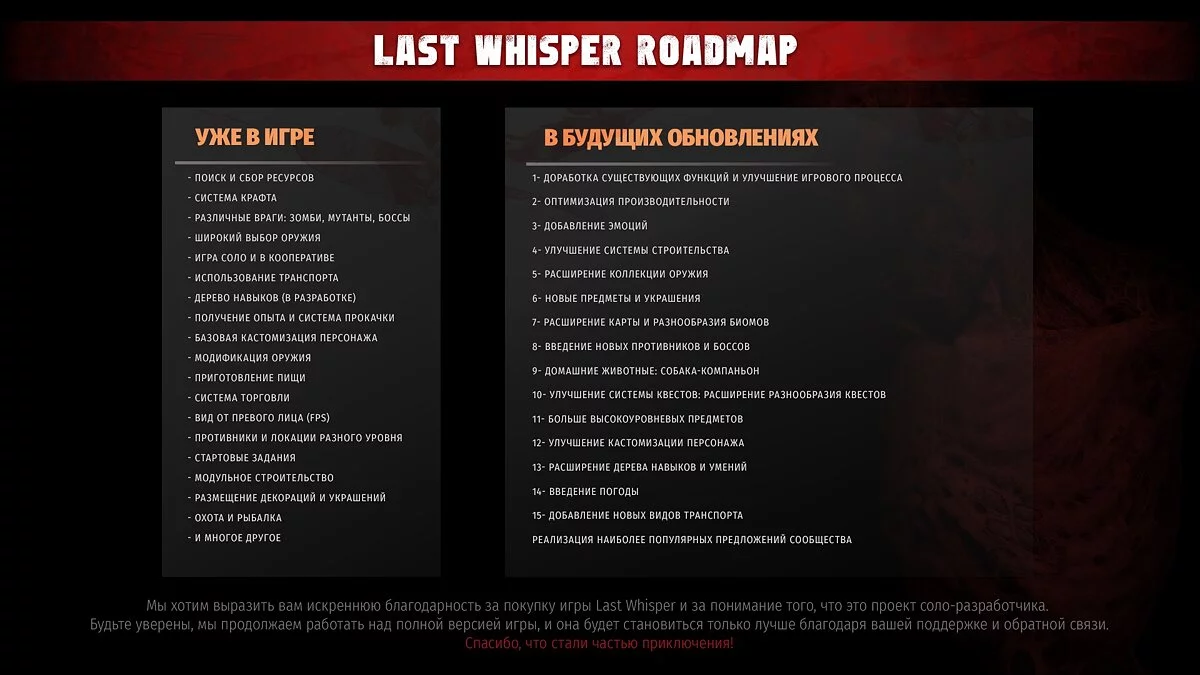 В будущем разработчики, среди прочего, улучшат все механики, подтянут оптимизацию и расширят открытый мир. Также в выживалке появятся новые враги, оружие и транспорт.