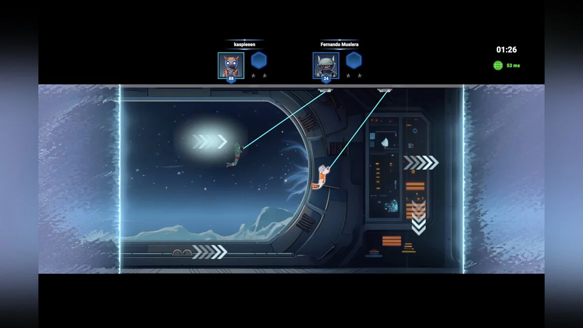 Swing Into Zero-G — космический раннер с мультиплеером и двухмерной графикой. Игра вышла в раннем доступе, где пробудет 5-6 месяцев. Есть перевод на русский язык. Страница в Steam.