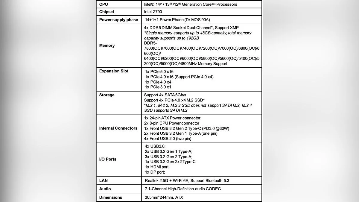 Основой для CVN Z790D5 Ark Frozen послужил чипсет Z790, который обеспечивает поддержку новейших процессоров Intel Core 14-го, 13-го и 12-го поколений, оперативной памяти DDR5 и множества современных интерфейсов.
