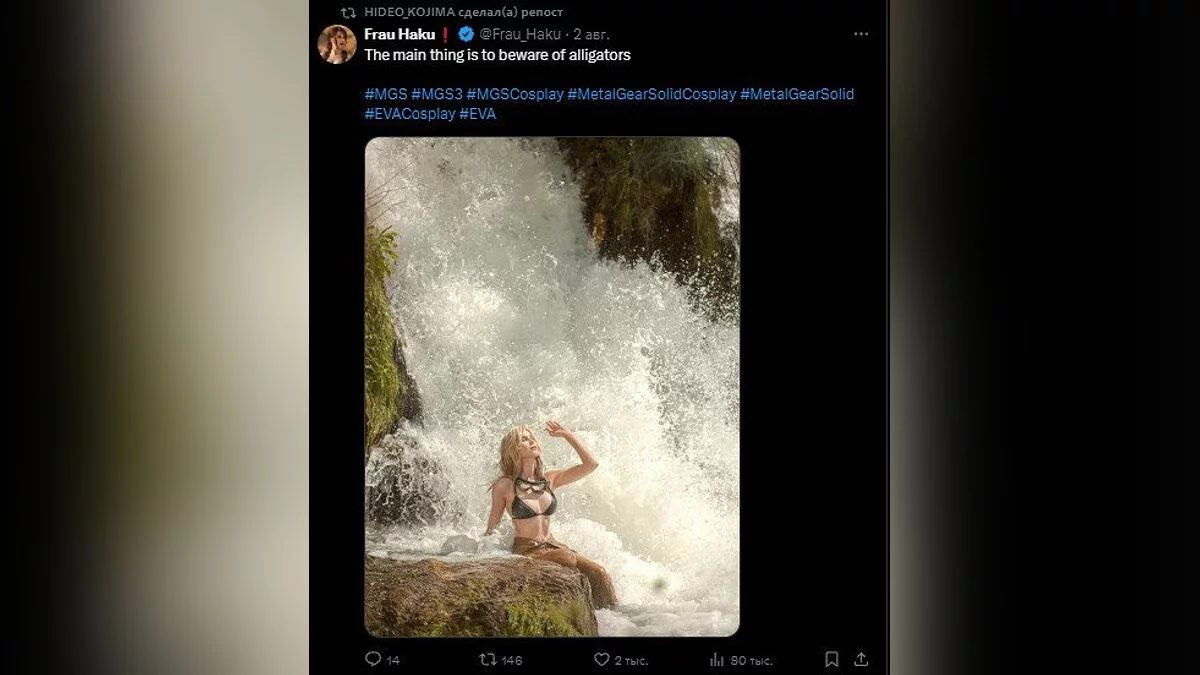 Россиянка закосплеила Еву из Metal Gear Solid 3 и привлекла внимание Хидео Кодзимы