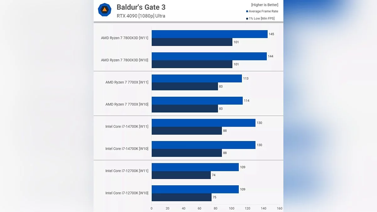 Результаты тестов показали, что производительность в играх таких как Baldur's Gate 3, Hogwarts Legacy и Spider-Man Remastered практически не отличалась между Windows 10 и 11. В некоторых случаях Windows 10 даже показывала немного лучшие результаты, например, в Hitman 3 и Watch Dogs: Legion. Преимущества Windows 10 были особенно заметны в таких играх, как Cyberpunk 2077 и Counter-Strike 2, где прирост fps достигал 10%. В большинстве случаев разница в производительности между двумя ОС была заметна только в тестах, а не в реальном игровом процессе.