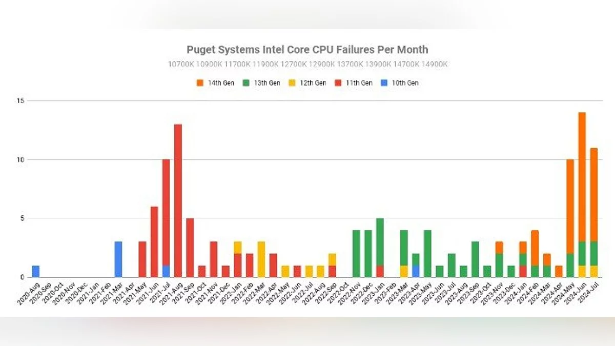 Согласно статистике, количество поломок у процессоров Core последних поколений действительно выше, чем у предыдущих моделей. Однако процессоры AMD серий 5000 и 7000 испытывали подобные проблемы даже чаще. Как установили специалисты Puget Systems основной причиной поломок чипов Intel является неправильная заводская настройка материнских плат с включённой функцией «Multicore Enhancement», которая автоматически разгоняет процессор за пределы установленных спецификаций. Это приводит к перегреву и в конечном итоге, выходу процессоров из строя.