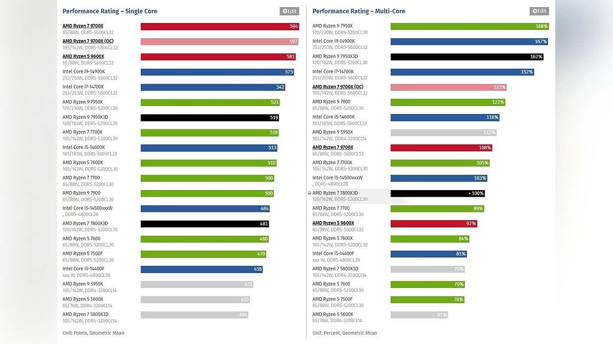 Кроме того, новинки столкнутся с жёсткой конкуренцией со стороны существующих процессоров AMD — Ryzen 5000X3D и 7000X3D, а также будущих моделей Ryzen 9000X3D. Также ожидается давление со стороны Intel, готовящей к выпуску новые процессоры Arrow Lake. В целом, обозреватели отмечают, что Ryzen 5 9600X и Ryzen 7 9700X представляют собой интересные решения с точки зрения энергоэффективности и однопоточной производительности, однако их прирост в играх остаётся незначительным.