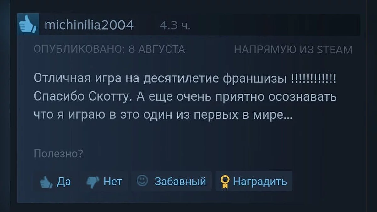 На момент написания данного поста рейтинг игры составляет 96% положительных отзывов.