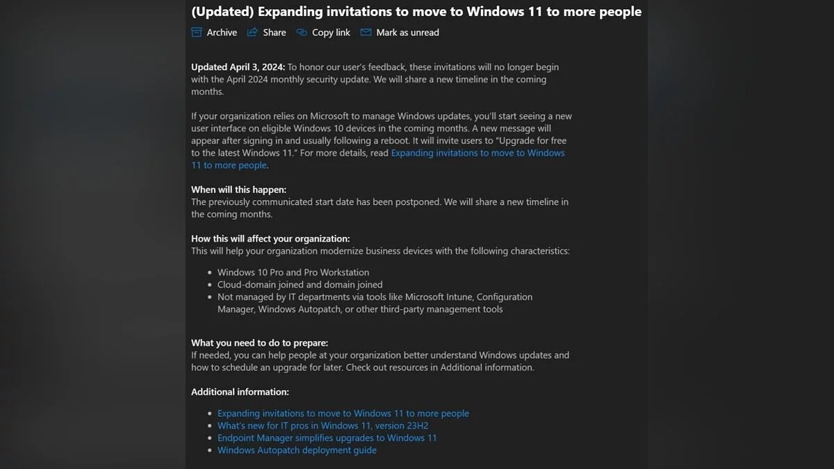 Компания Microsoft приостановила активную рекламу Windows 11 в Windows 10 из-за негативных отзывов пользователей. В основном такие сообщения рассылались для владельцев домашней версии, но в некоторых случая их получали обладатели Pro и Business.