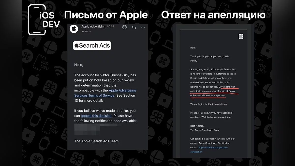Компания Apple разослала письма разработчикам из России и Беларуси о закрытии доступа к их аккаунтам в Apple Search Ads. Данная программа позволяла продвигать свои приложения в App Store.