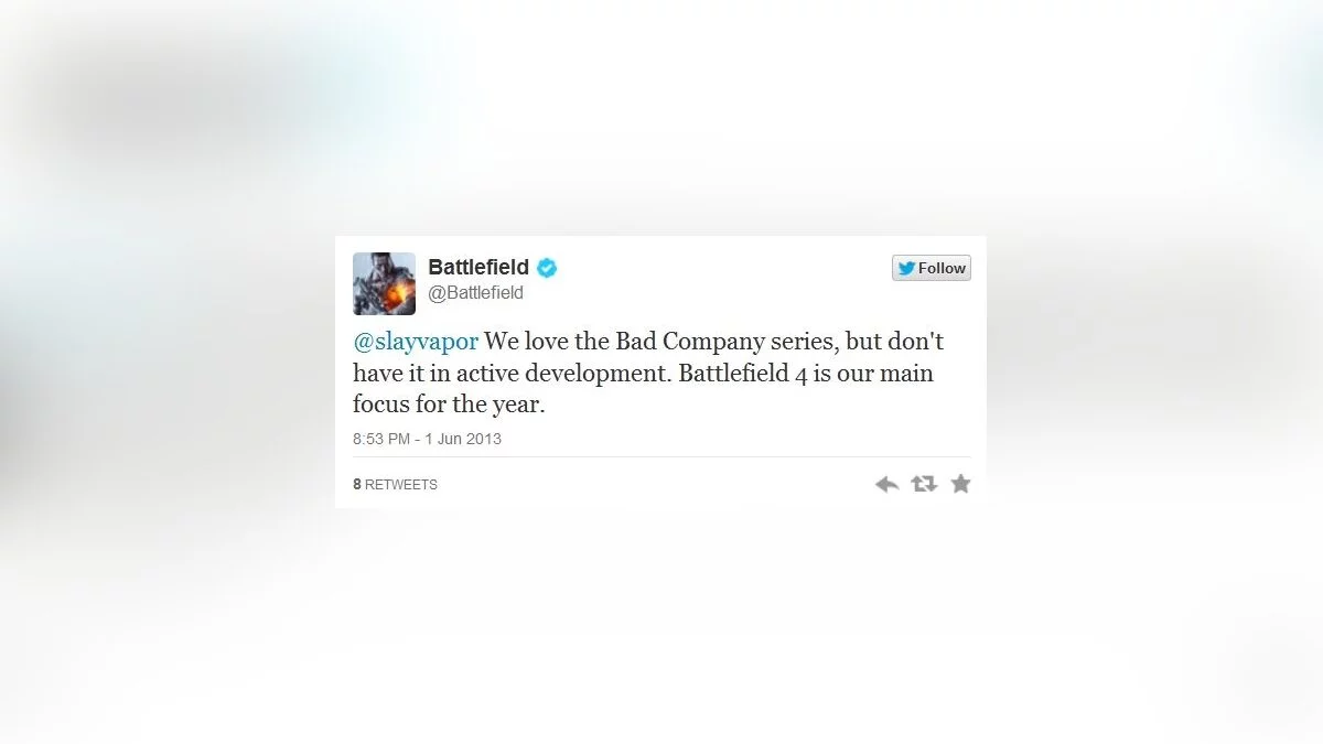 В сообщении говорится о том, что для разработчиков в данный момент самой приоритетной в этом году является Battlefield 4. И ребят можно понять — осенью нас ждёт настоящий голливудский экшен со взаправдашней next-gen графикой и напряжёнными побоищами в мультиплеере. Неудивительно, что на его создание уходят все силы DICE.