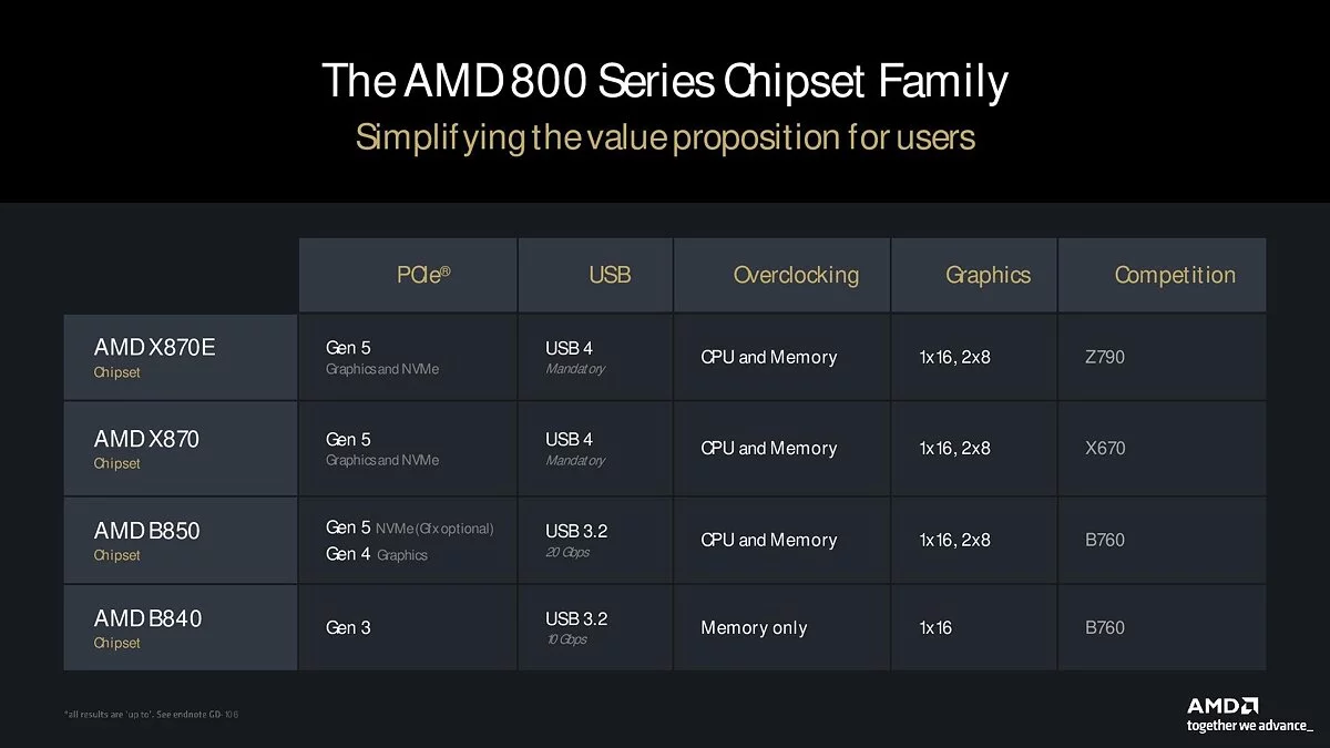 Чипсеты B850 и B840, впервые появляющиеся в номенклатуре AMD, предложат разный уровень возможностей: B850 поддерживает разгон процессоров и новейшие интерфейсы PCIe 5.0 и 4.0, в то время как B840 ориентирован на бюджетные решения с ограниченным функционалом. О планах выпустить материнские платы на чипсетах серии А пока неизвестно. Ожидается, что материнские платы на базе новых чипсетов будут представлены на выставке CES 2025 в январе следующего года.
