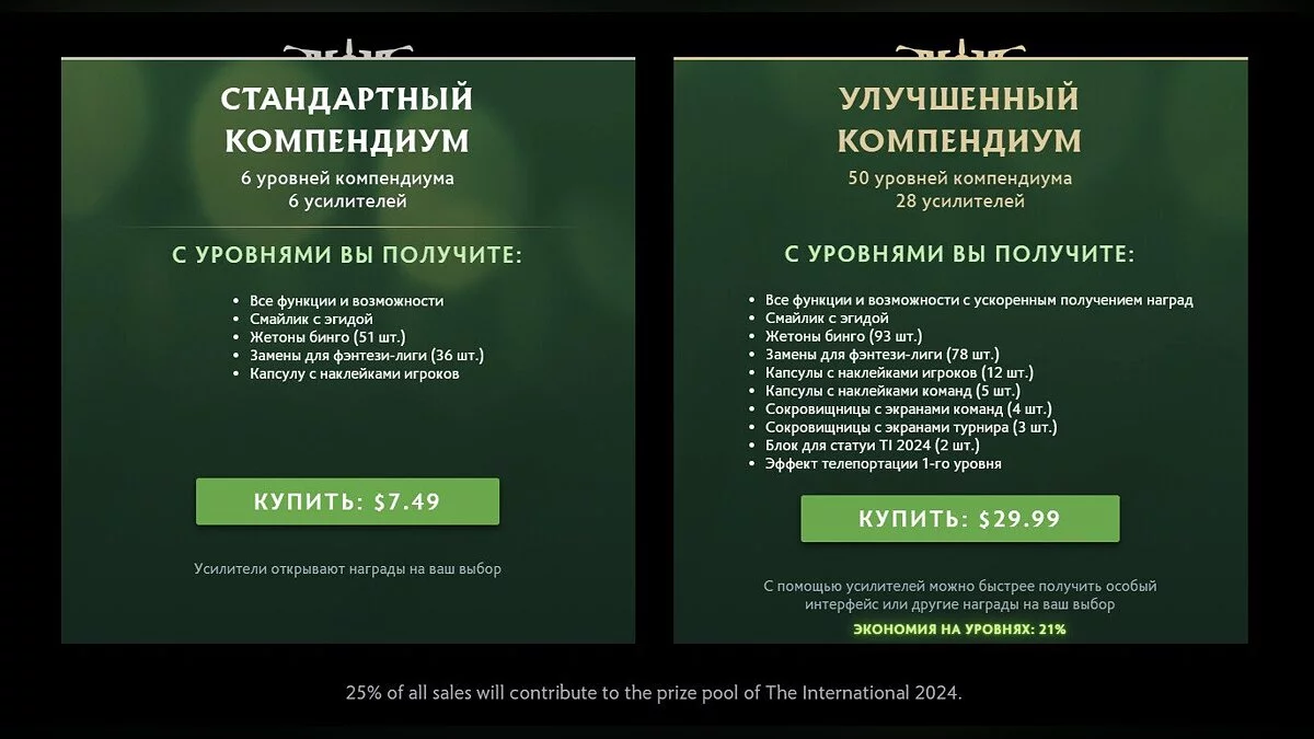 В игре также появился новый платный компендиум, деньги от продажи которого пойдут в фонд The International. Как и в прошлом году, компендиум не содержит какой-либо косметики.