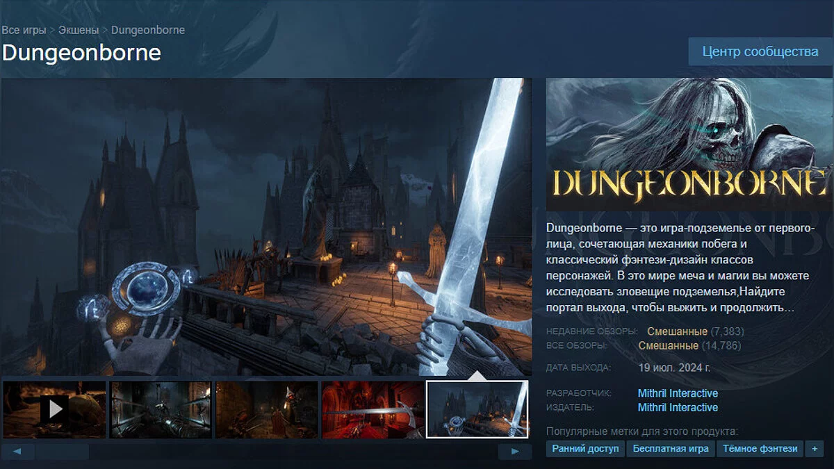 - Dungeonborne — вышедшая в раннем доступе фэнтезийная игра от первого лица про исследование подземелья. Получила 64% положительных отзывов. Страница в Steam;