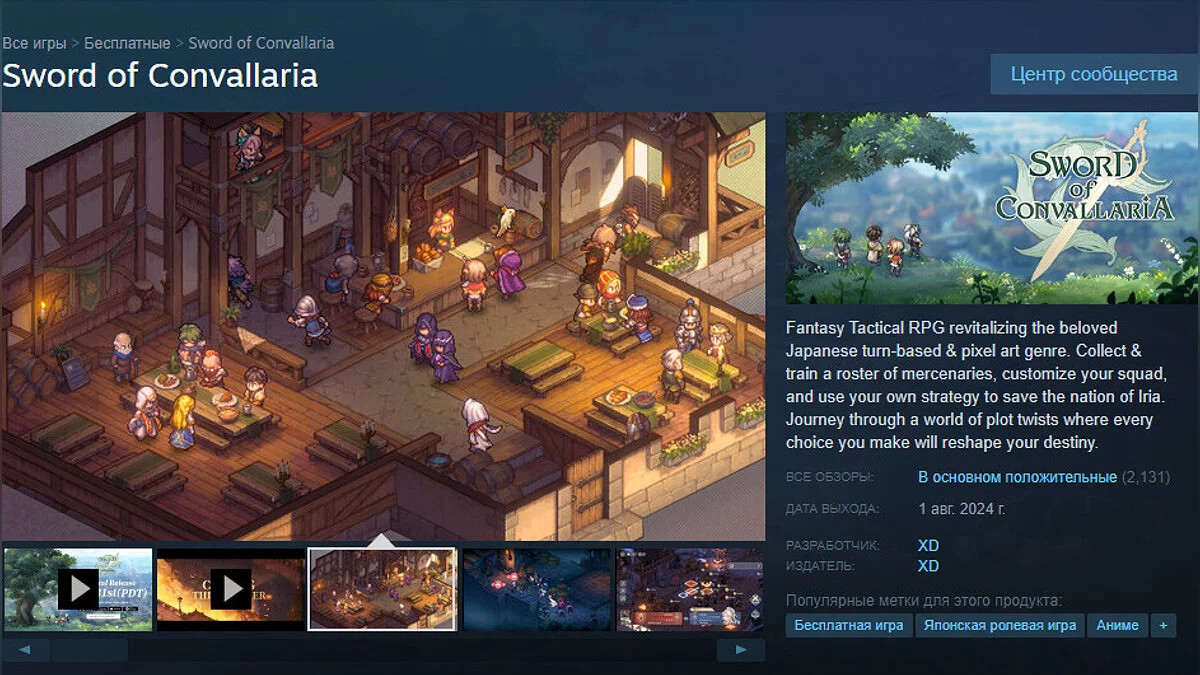 - Sword of Convallaria — одиночная тактическая RPG с пиксельной графикой и пошаговой боевой системой. Нет перевода на русский язык. Имеет 73% рейтинга. Страница в Steam.