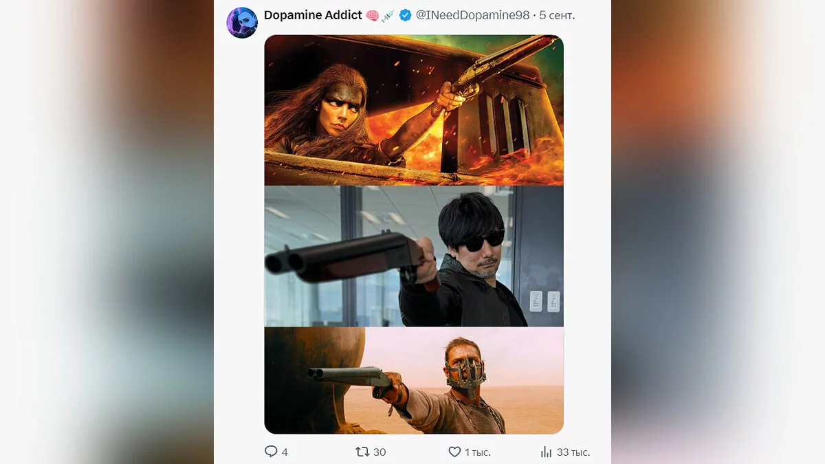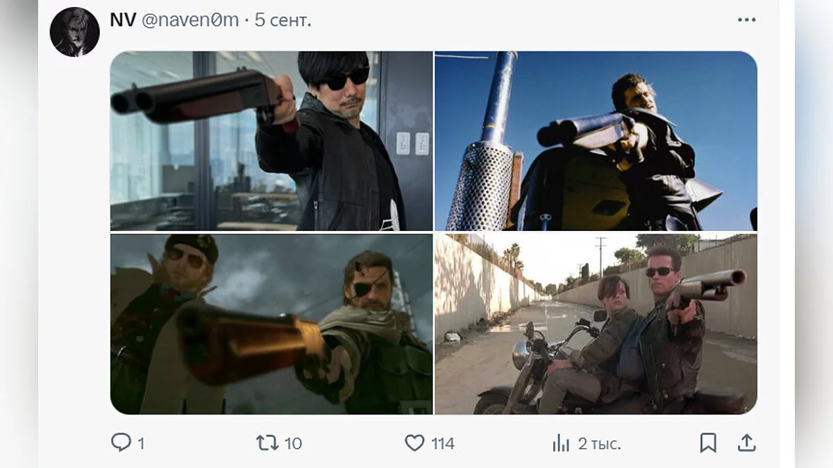 К примеру, пользователи начали сравнивать Хидео Кодзиму с Терминатором, Безумным Максом, Джоном Марстоном из серии Red Dead Redemption и, конечно же, главным героем Metal Gear Solid 5: The Phantom Pain.