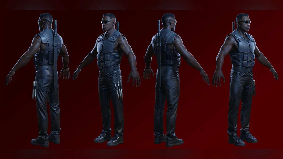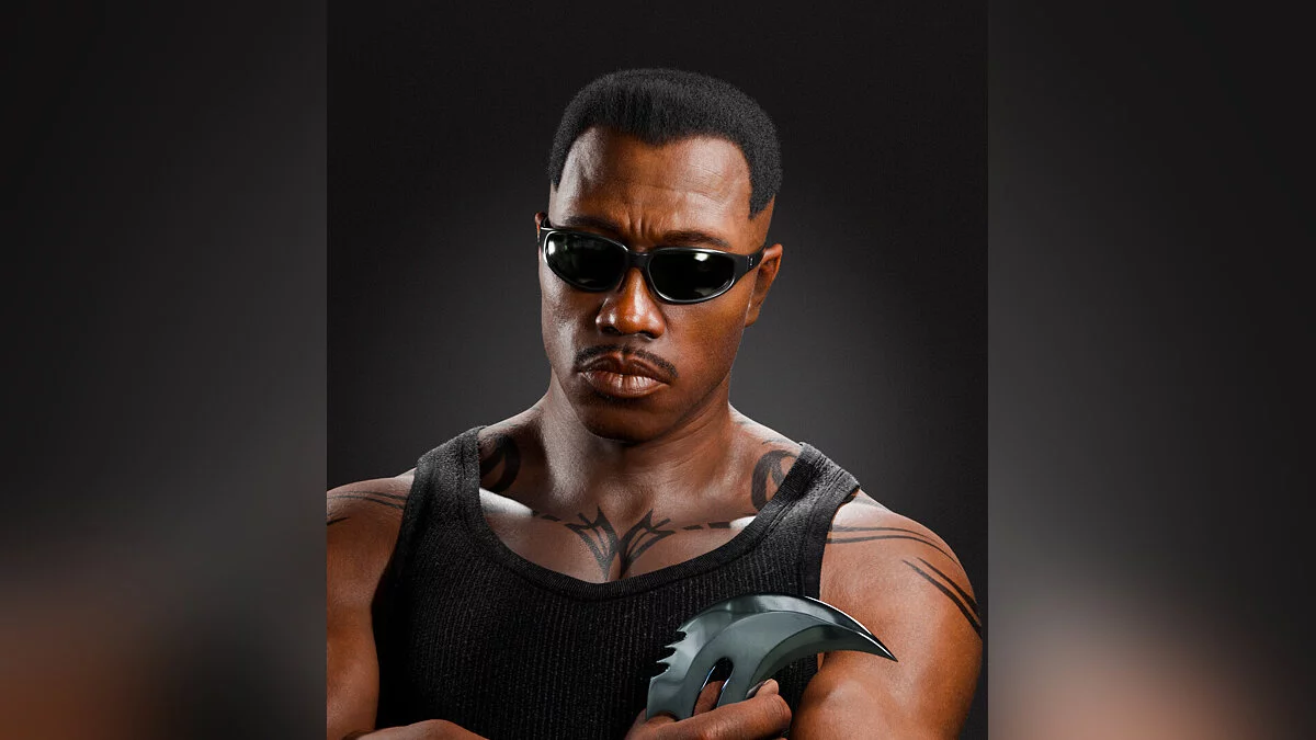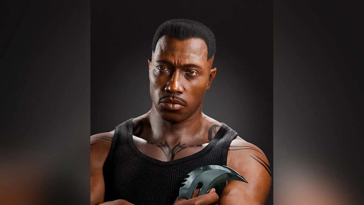 Цифровой художник Микаэль Андерссон (Mikael Andersson), работавший над Cyberpunk 2077, Battlefield 5 и Star Wars Battlefront 2, в деталях воссоздал классического Блэйда, которого в фильмах 1990-х и 2000-х играл Уэсли Снайпс (Wesley Snipes).
