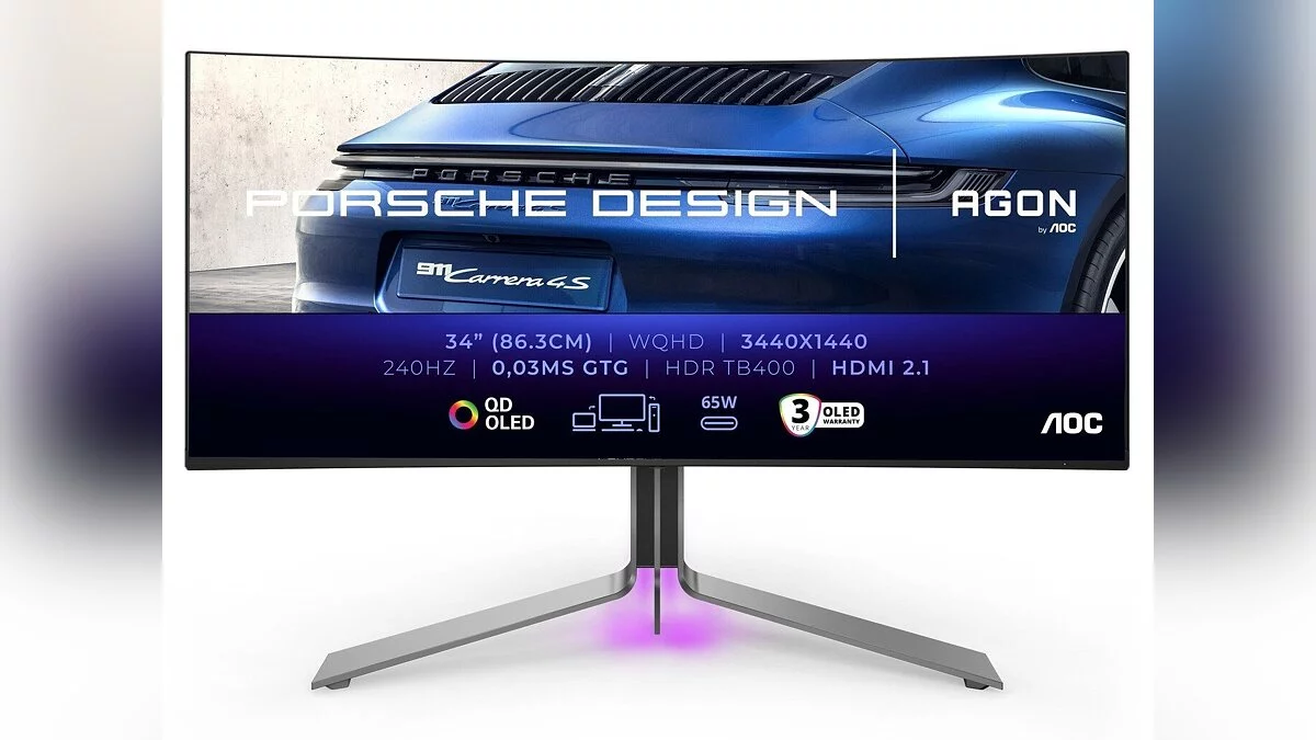 Компания AOC, совместно с Porsche Design, выпустила новый изогнутый игровой монитор AGON PRO PD34, созданный для самых требовательных геймеров. Модель оснащена 34-дюймовым QD-OLED экраном с разрешением 3440x1440 пикселей и соотношением сторон 21:9. Монитор обеспечивает реалистичную цветопередачу благодаря 100% охвату цветового пространства sRGB и 99% AdobeRGB и DCI-P3.