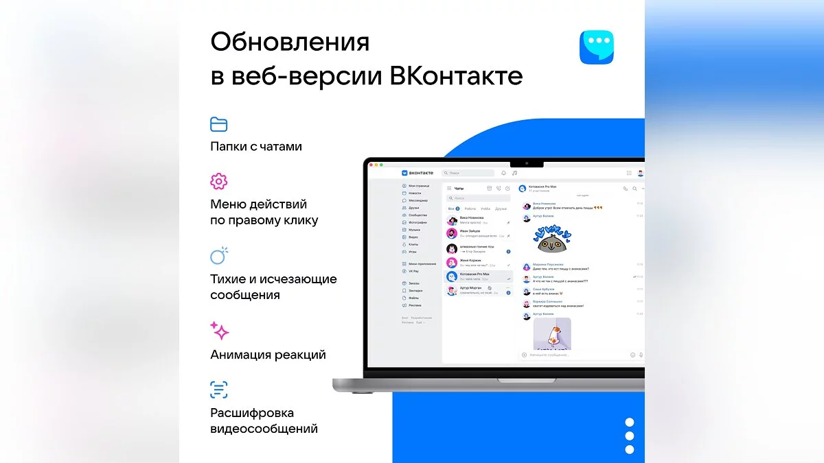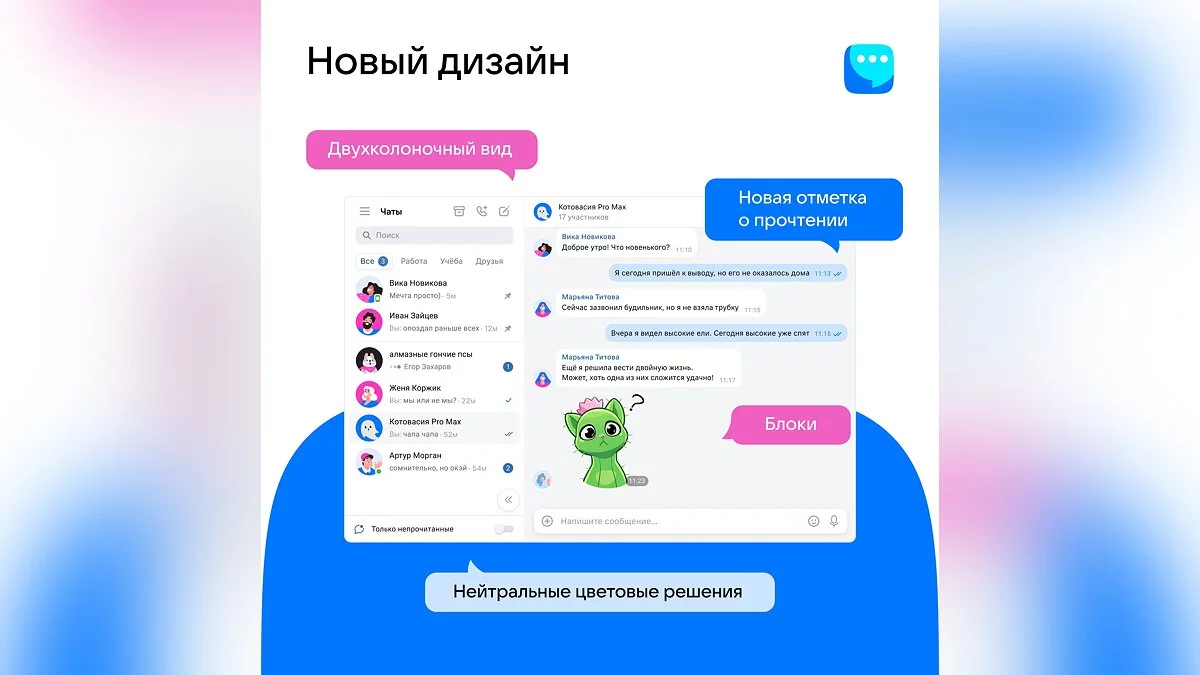 Веб-версии «VK Мессенджера» получила крупное обновление, которое, среди прочего, изменило дизайн и добавило ряд полезных функций.