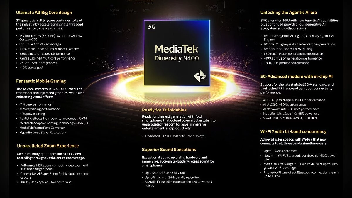 MediaTek анонсирует Dimensity 9400 с фокусом на мощность и генеративный ИИ