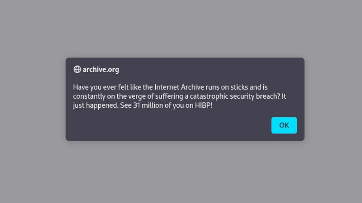 Сайт Архива Интернета Archive.org, известный своей уникальной базой данных с историей веб-страниц, подвергся серьёзной хакерской атаке. В результате взлома, который произошёл месяц назад, была скомпрометирована информация о 31 миллионе пользователей. На главной странице сайта появилось тревожное сообщение, которое указывало на масштаб утечки данных. Электронные адреса, имена пользователей и хэшированные пароли стали доступны на онлайн-сервисе проверки утечек данных Have I Been Pwned (HIBP).