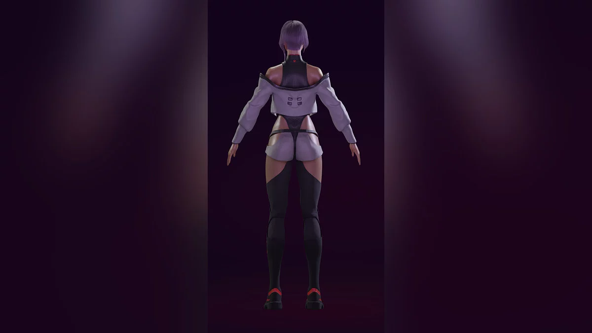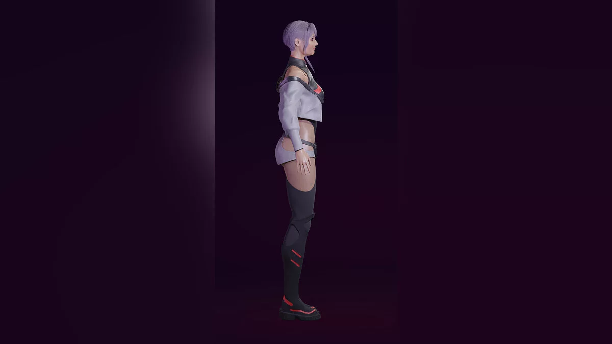 При создании модели я уделил особое внимание деталям, стараясь передать характер и уникальный стиль Люси. Реалистичные анатомические пропорции и тщательно проработанные черты лица помогают создать выразительный и запоминающийся образ. Эта 3D-модель Люси — не просто реплика персонажа, а глубокая интерпретация, в которой я постарался уловить дух мира киберпанка.