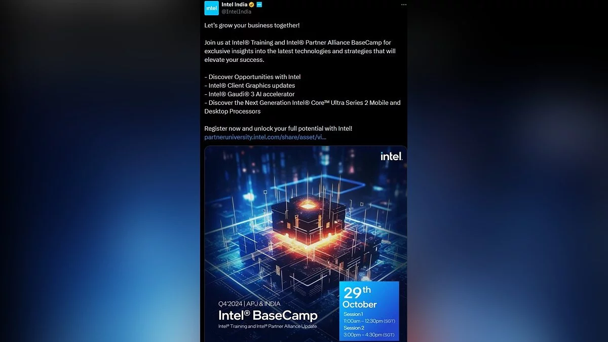 Intel проведет партнерское мероприятие Partner Alliance BaseCamp 29 октября, где представит обновления своей следующей линейки мобильных и графических продуктов Core Ultra Series 2. Основное внимание будет уделено новым процессорам для клиентских устройств, а также связанным с ними графическим решениям. Ожидается, что на мероприятии также будут раскрыты подробности о следующем поколении видеокарт Intel Arc.