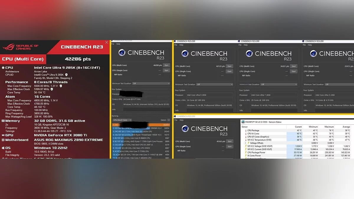 Согласно первым тестам, флагманский процессор Intel Core Ultra 9 285K демонстрирует впечатляющую производительность, но за это приходится платить высоким энергопотреблением. Новинка прошла бенчмарки, в том числе Cinebench R23, где показала результаты, ставшие темой горячих обсуждений.