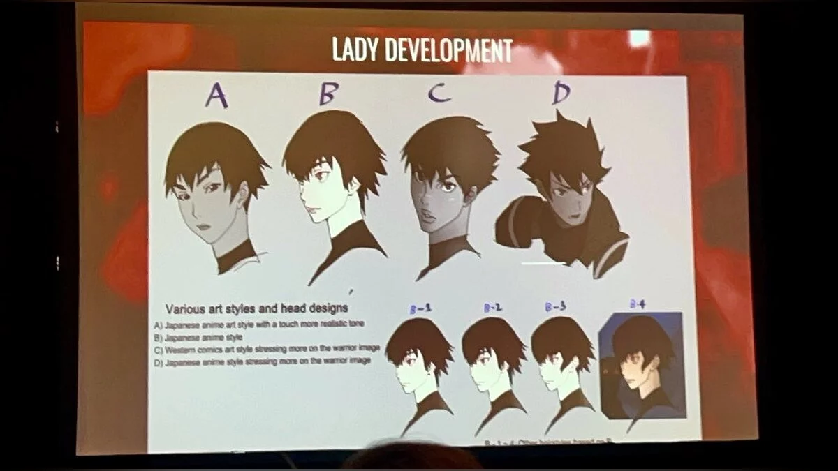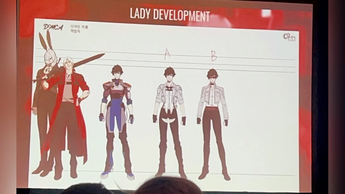 На слайдах можно увидеть проработку образов Данте и Леди. Авторы много экспериментировали с персонажами, поэтому дизайн Леди, например, оказался вдохновлен Коноко из игры Oni.