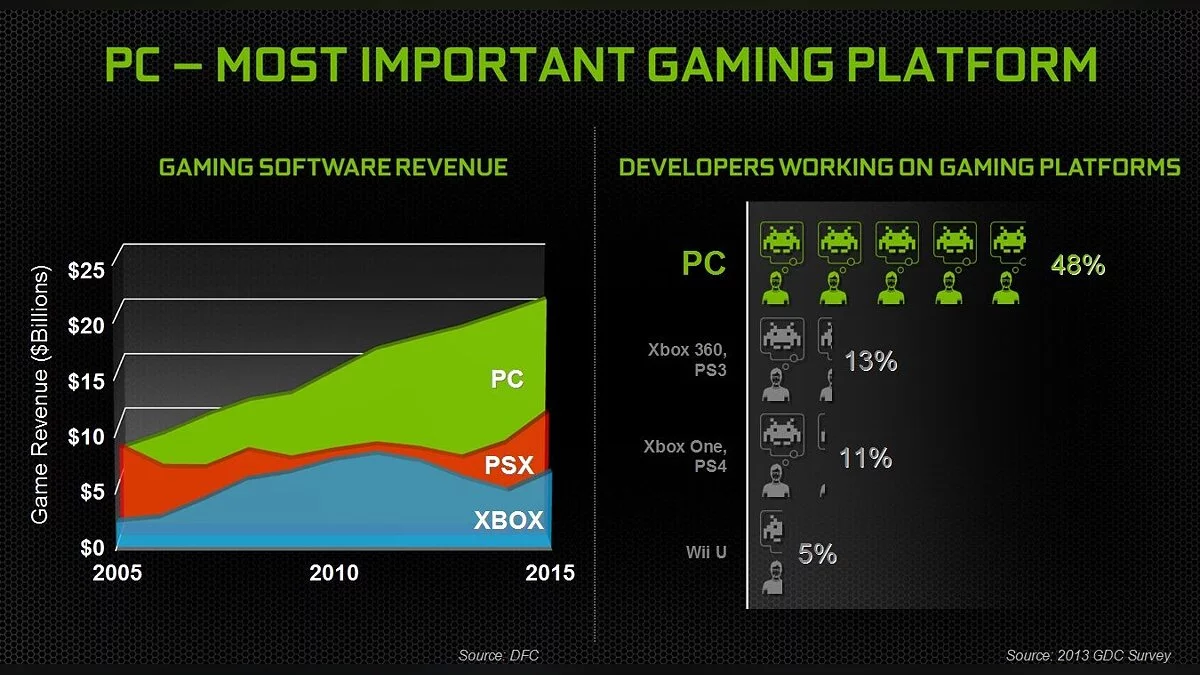 На собственной пресс-конференции на E3 компания Nvidia провозгласила PC самой важной игровой платформой, после чего подкрепила свои слова некоторыми слайдами.