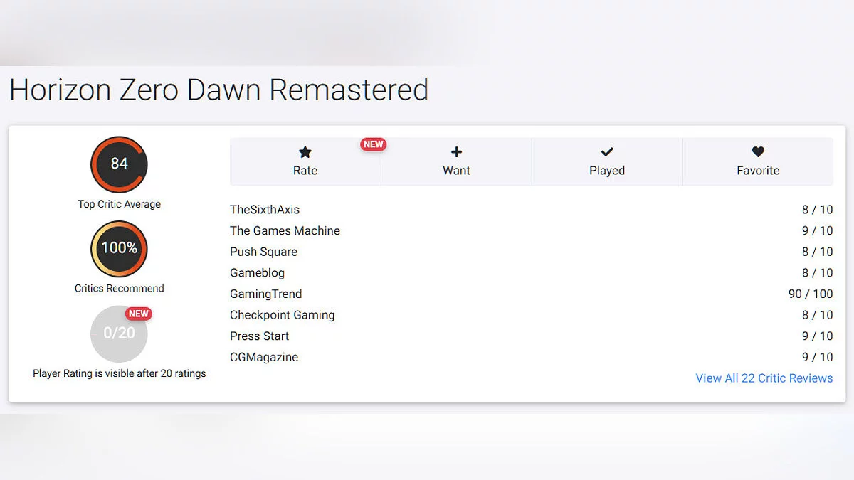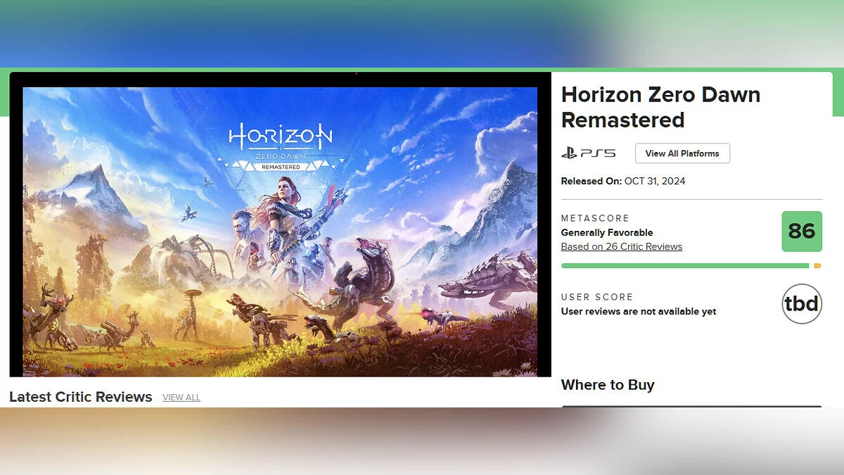Sony убрала эмбарго на публикацию обзоров Horizon Zero Dawn Remastered. Многие обозреватели поставили ремастеру высокие оценки — сейчас у него 86 баллов на Metacritic и 84 балла на OpenCritic.