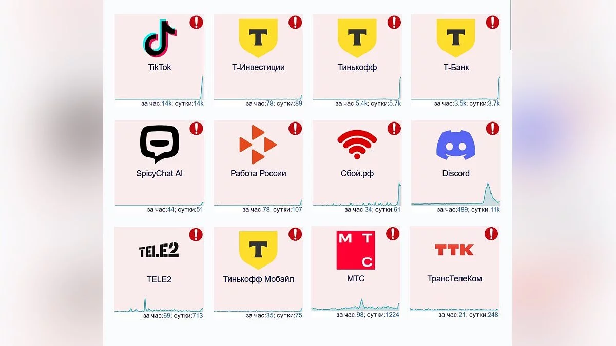 Пользователи из РФ сообщают о массовых сбоях в различных интернет-сервисах, включая мобильных операторов и приложения Т-Банка. Жалобы поступают из разных регионов.