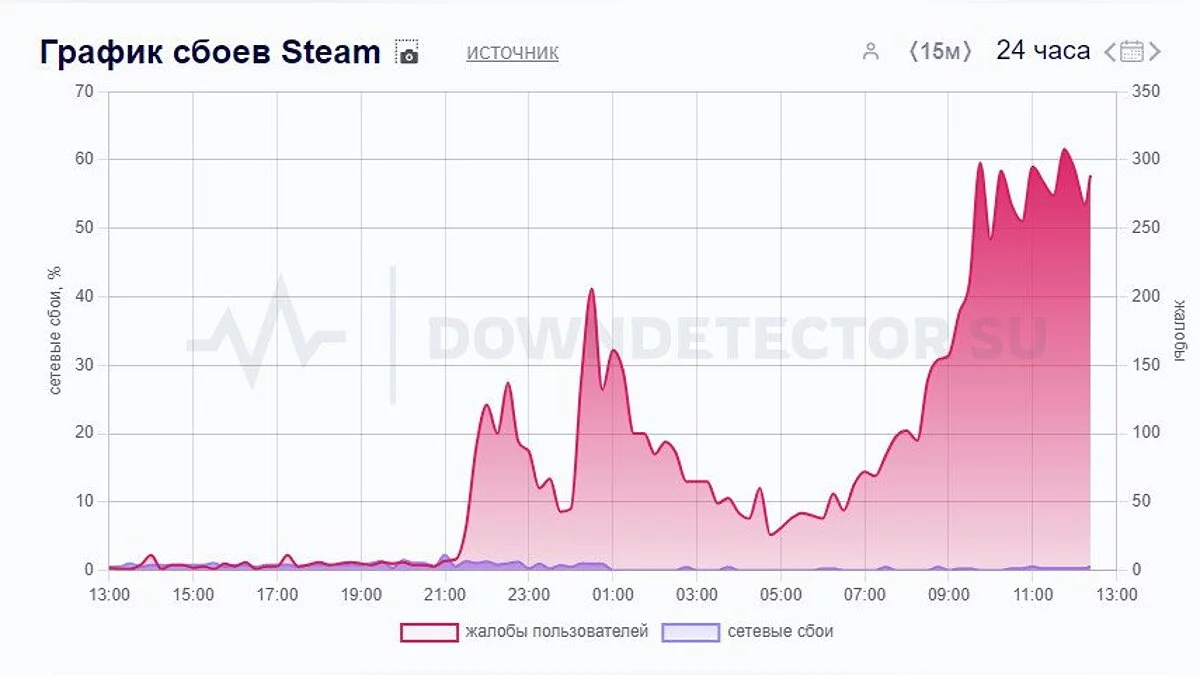 Пользователи из России и стран СНГ пожаловались на проблемы с доступом к Steam. Судя по сервисам вроде Downdetector.com и Downdetector.su, приложение и сайт действительно не работают у многих игроков.