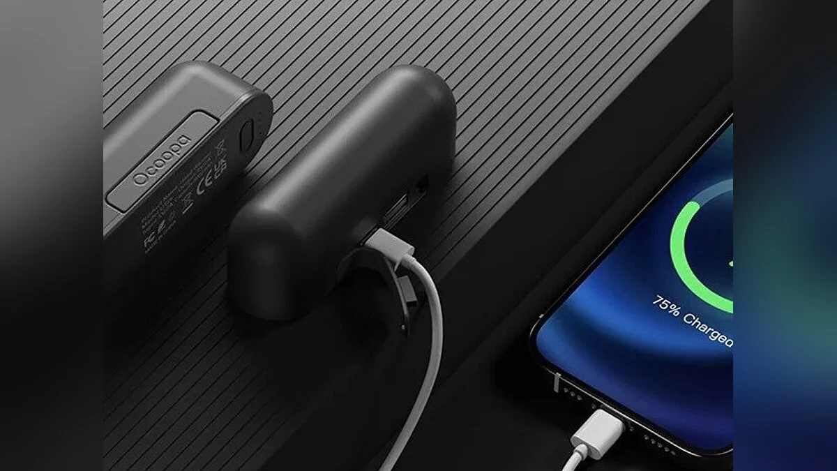 Каждая половинка устройства имеет аккумулятор ёмкостью 5000 мА*ч и оснащена разъёмами USB-C и USB-A, что позволяет зарядить смартфон до 100% и трижды подзарядить наушники.