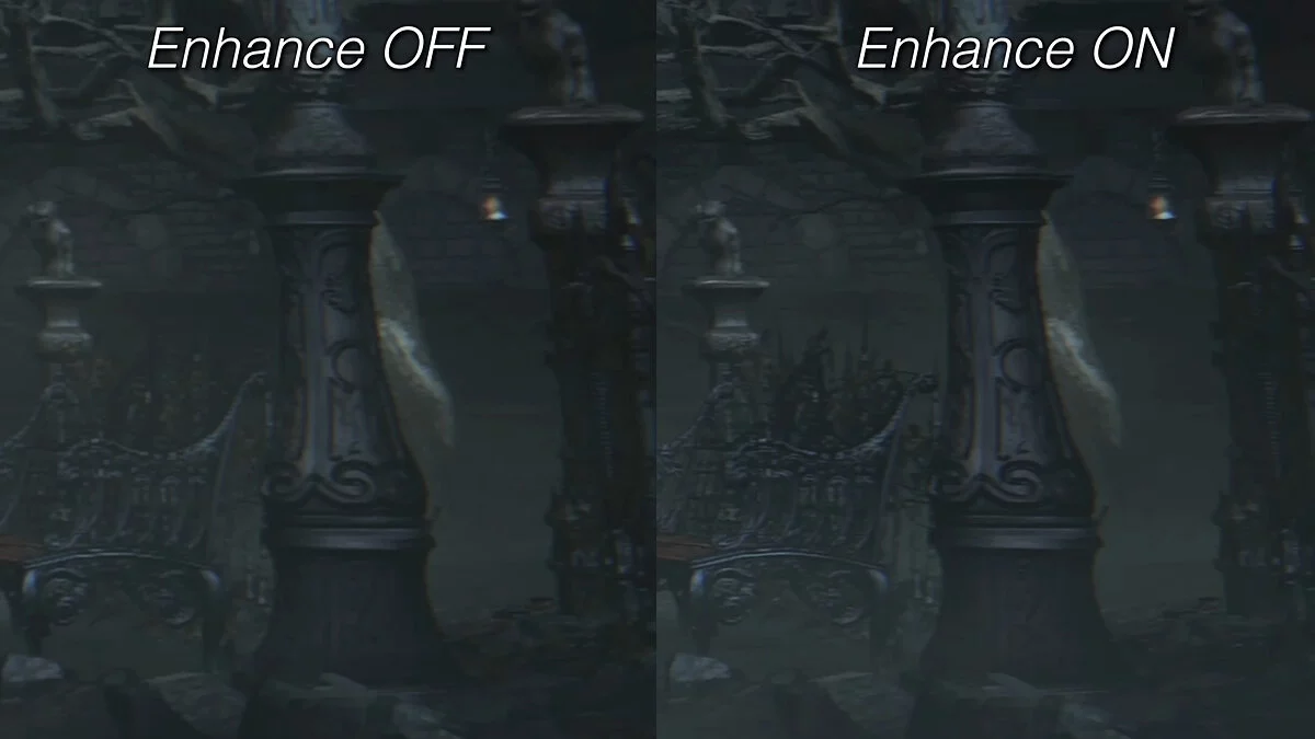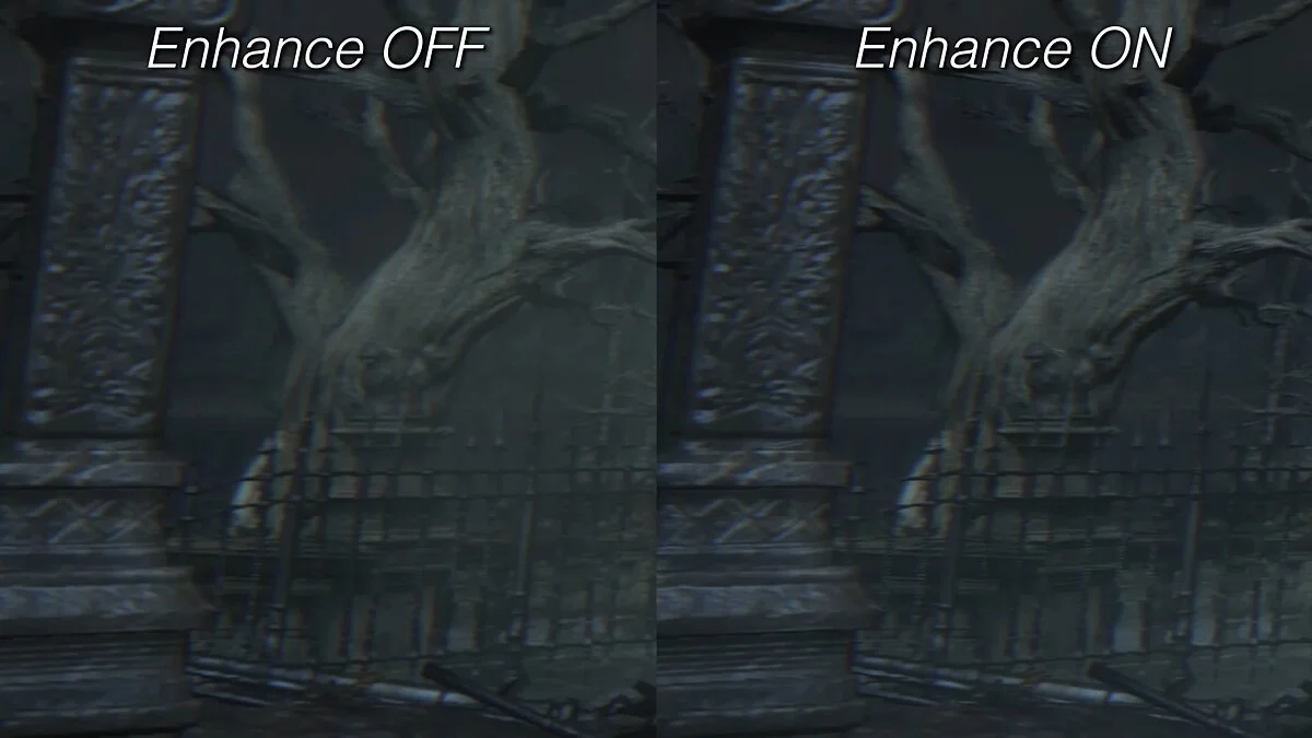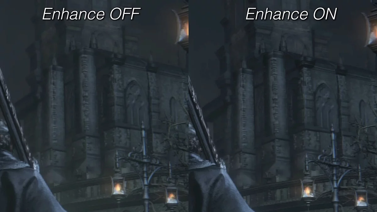 Изменения, правда, трудно назвать значимыми — как минимум в случае с Bloodborne. Мелкие детали стали выглядеть немного чётче, однако этого почти никто не заметит. К тому же главную проблему «соулслайка» — фреймрейт 30 FPS — апскейлер не решает.