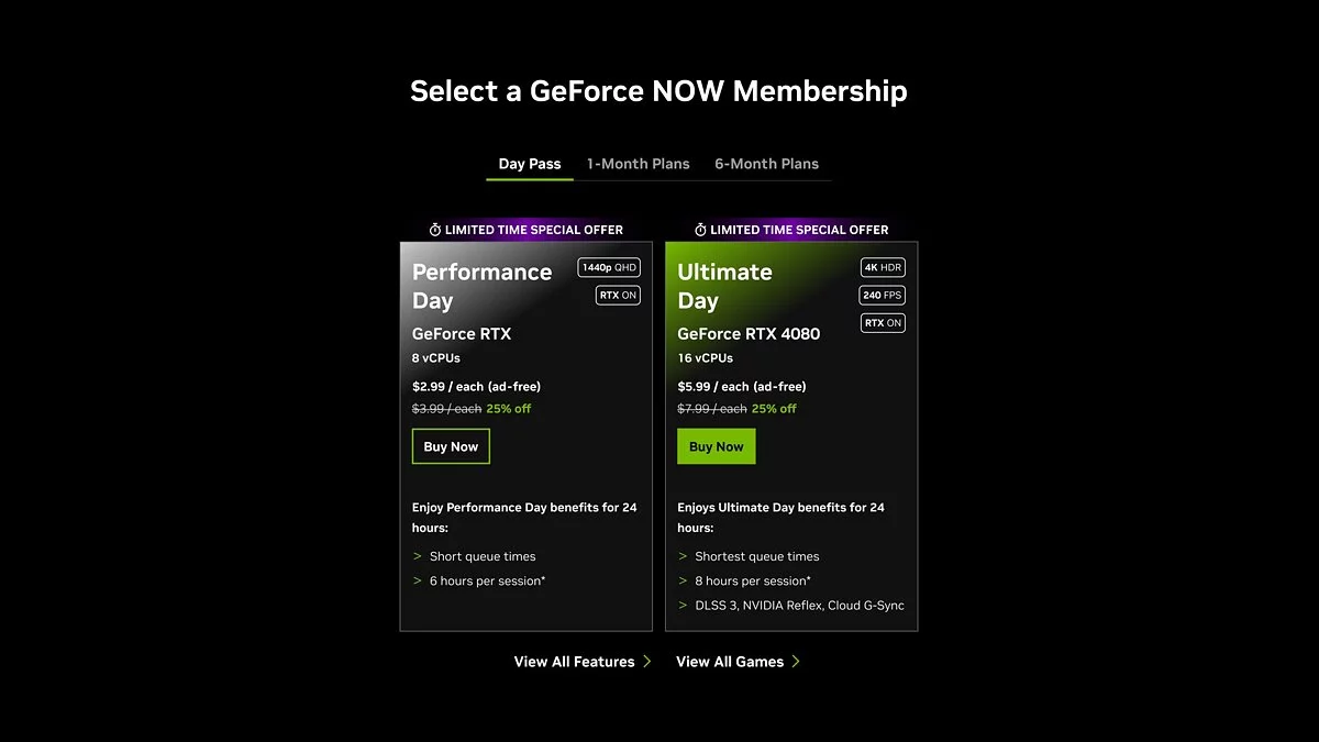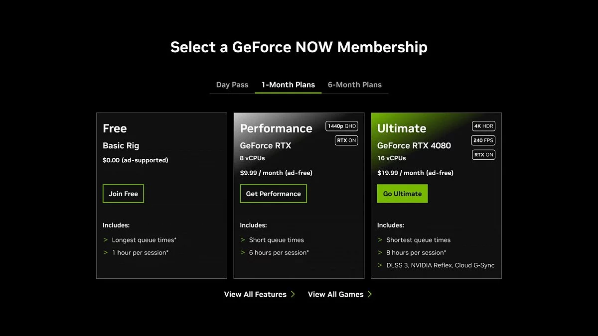 - Владельцы подписки Ultimate ($20) могут играть в режимах 4K/120 FPS и 1080p/240 FPS. Подключение осуществляется к игровым системам на базе GeForce RTX 4080;
