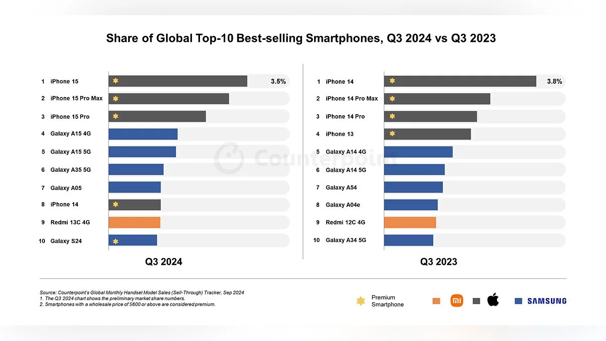 Список самых продаваемых устройств за третий квартал 2024 года: