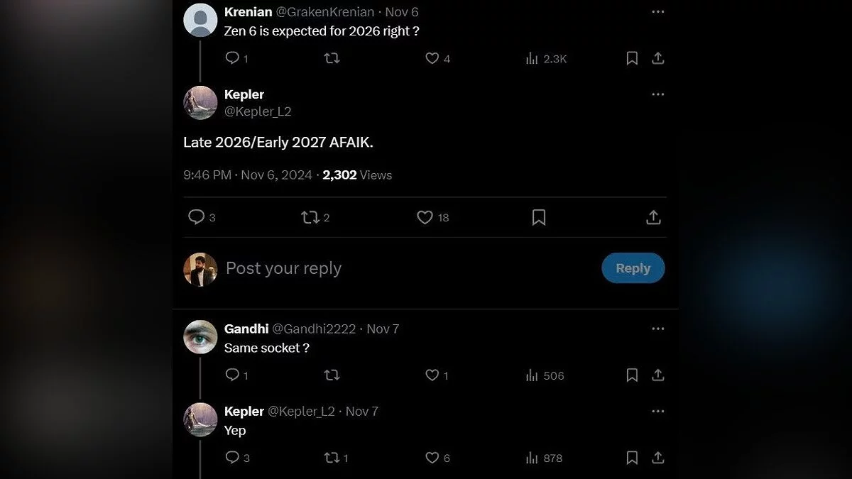 Инсайдер Kepler сообщил, что процессоры на архитектуре Zen 6 могут появиться не раньше конца 2026 года. В связи с этим, возможно, будет выпущено промежуточное поколение на базе текущей архитектуры Zen 5, которое закроет временной разрыв.