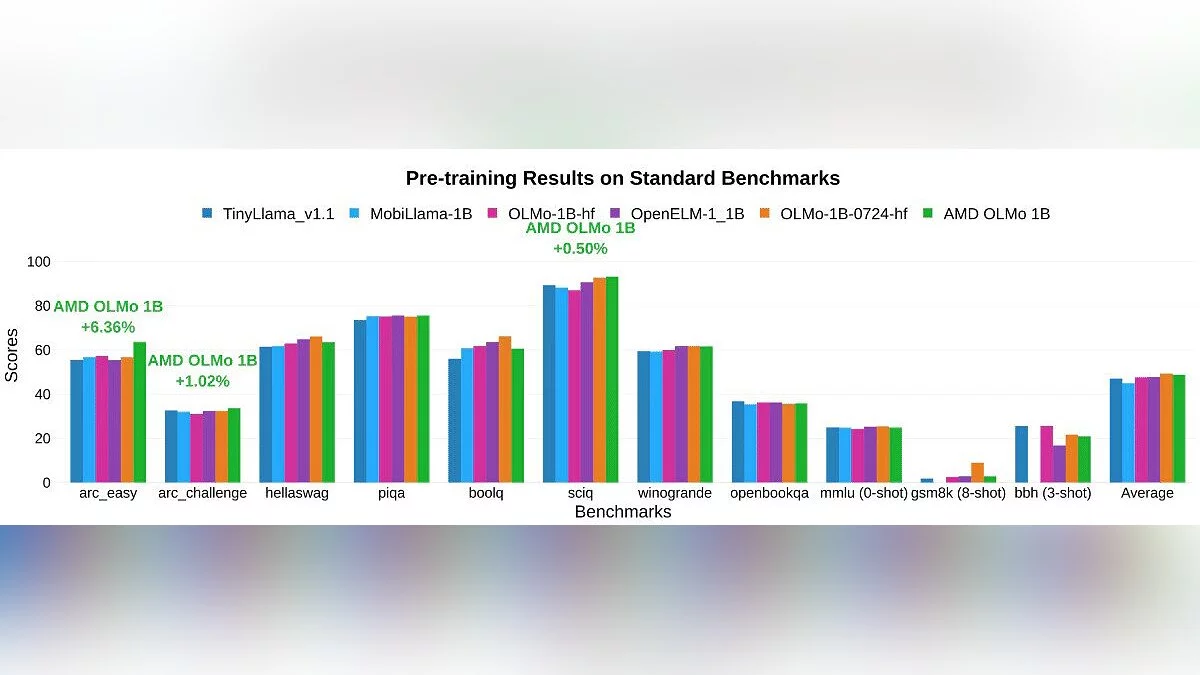 Первая большая языковая модель AMD OLMo стала доступной для всех