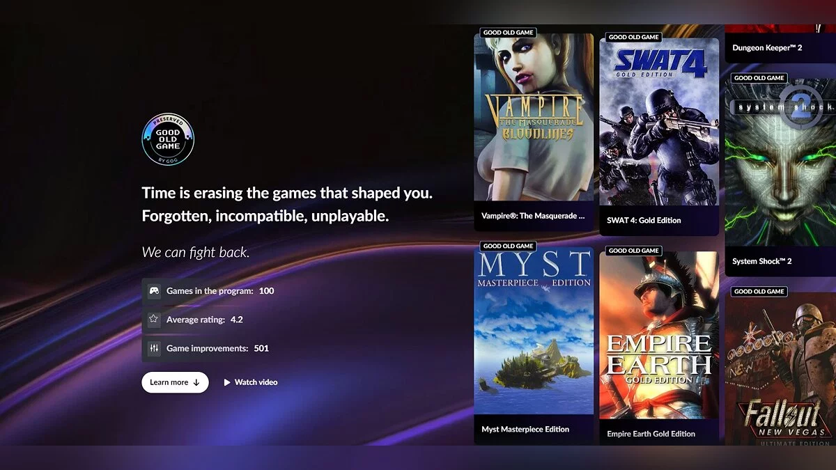 Новая инициатива направлена на то, чтобы «дарить играм вечную жизнь», подчеркивая главную задачу GOG — сохранить культурное наследие видеоигр для следующих поколений геймеров. Команда GOG будет тщательно тестировать старые проекты, а при необходимости — улучшать их для стабильной работы на актуальных «железе» и операционных системах.