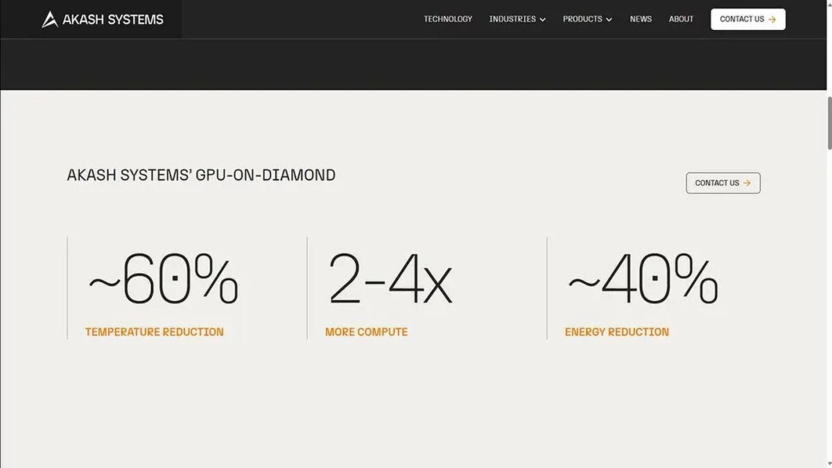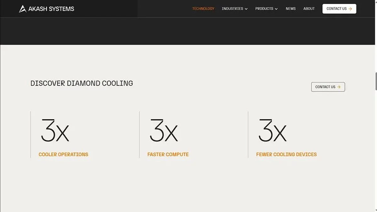 Стартап Akash Systems из Окленда анонсировал новую технологию охлаждения чипов с использованием синтетических алмазов, которая может снизить горячие точки на 10–20 градусов Цельсия и обеспечить на 25% больший потенциал разгона чипов.