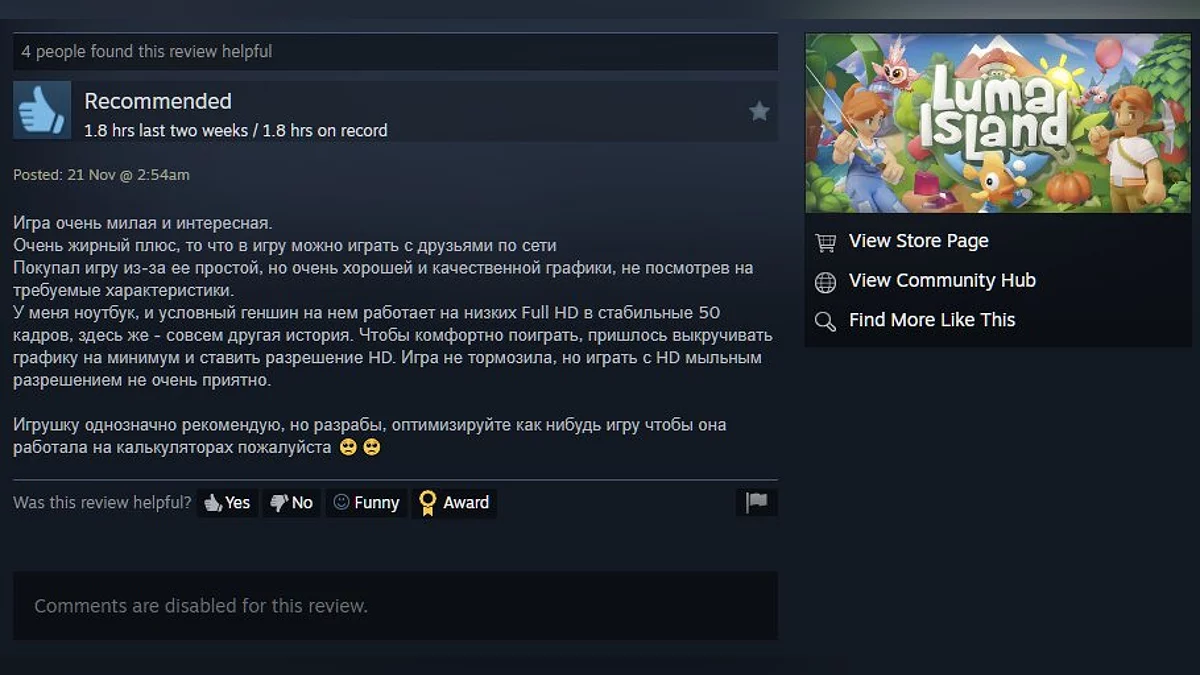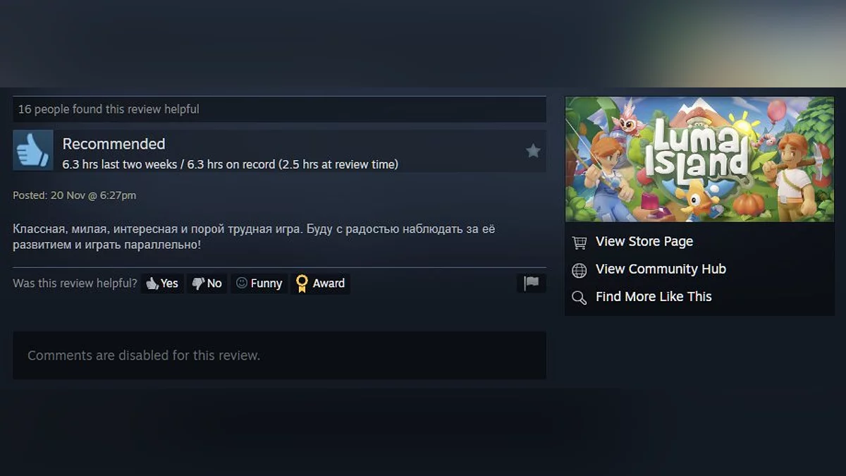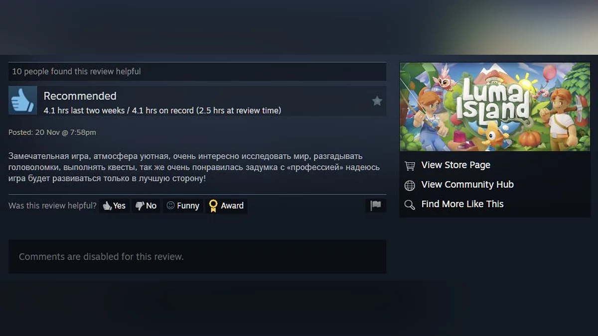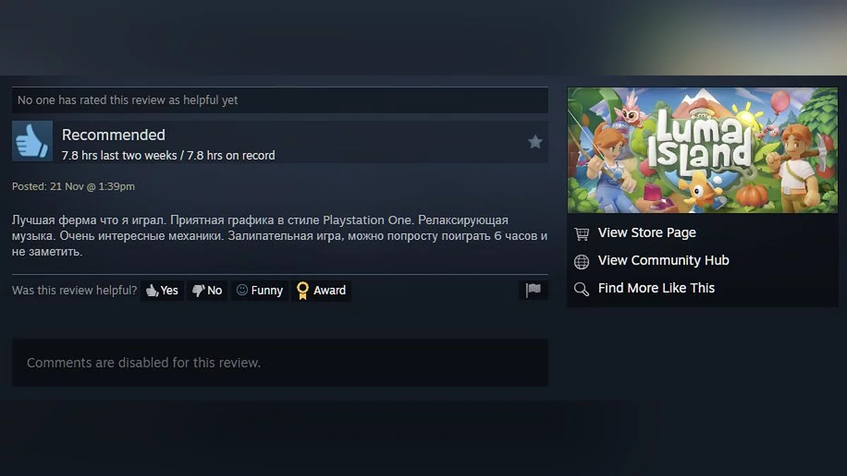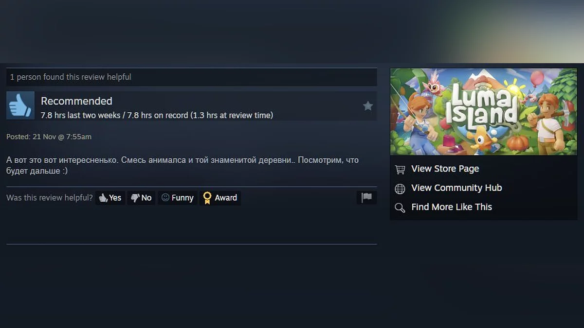 Игра уже получила более 400 отзывов и рейтинг 84%. Судя по комментариям, у студии Feel Free Games получилась достойная преемница Animal Crossing — крайне ламповая, добрая и увлекательная.