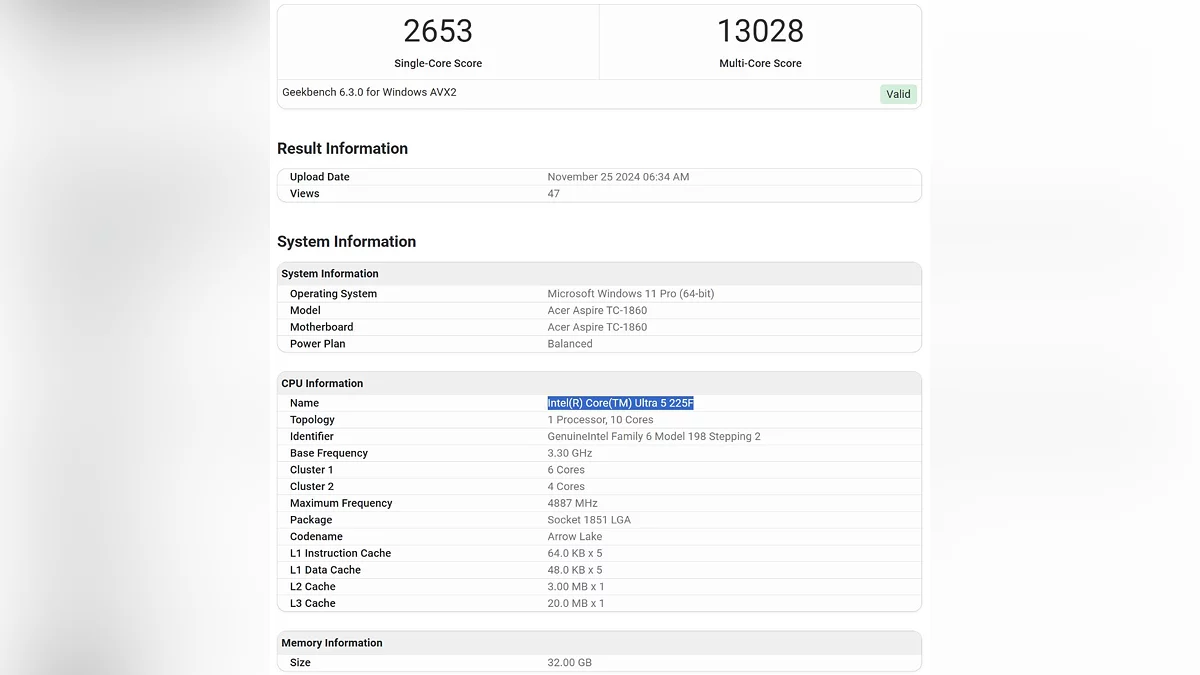 Согласно утечке, новый Core Ultra 5 225F стал выгодным выбором для геймеров