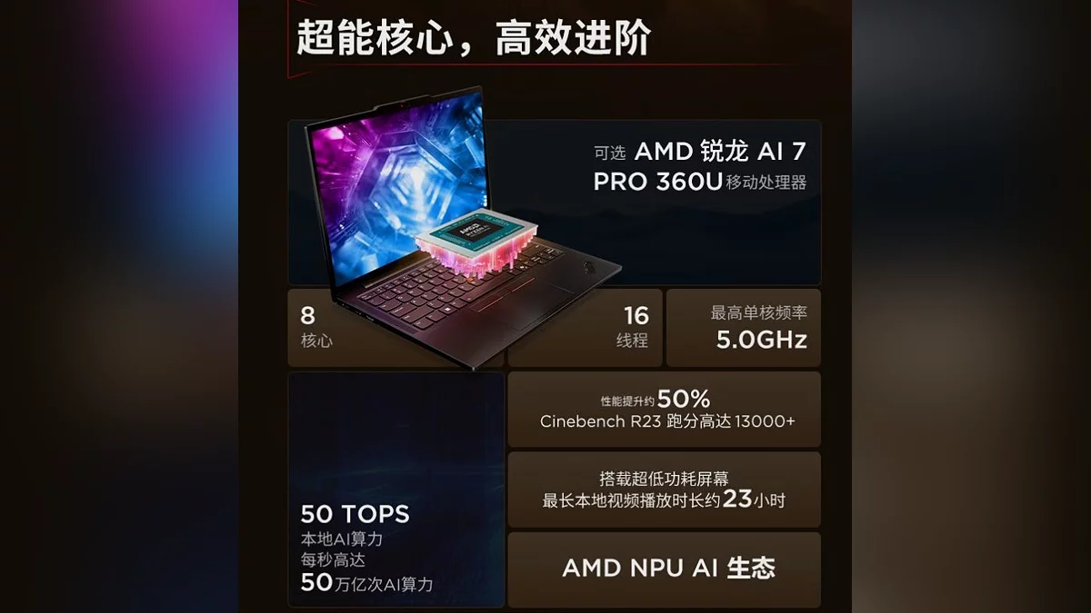 Lenovo анонсировала в Китае бизнес-ноутбук ThinkPad 14s AI 2024 с эксклюзивным процессором AMD Ryzen AI 7 PRO 360U. Этот 8-ядерный 16-поточный чип, не фигурировавший в официальных релизах AMD, является адаптированной версией семейства Ryzen AI 300 PRO. Он ограничен по мощности до 15 Вт, что позволило сохранить совместимость с существующими конструкциями для Ryzen 7 7840U и 8840U.