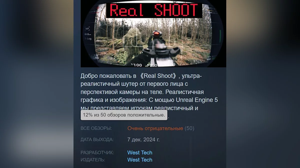 В Steam появился ещё один шутер, вдохновлённый Unrecord. До 15 декабря проект, получивший название Real Shoot, можно приобрести со скидкой 25% за 487 рублей.
