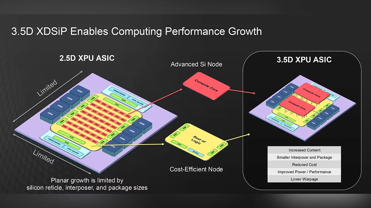 Платформа 3.5D XDSiP обещает повысить эффективность процессоров и сократить размеры интерпозеров, улучшая общую производительность. Продукты на основе этой технологии будут выпущены в 2026 году, а первые поставки начнутся в феврале того же 2026.