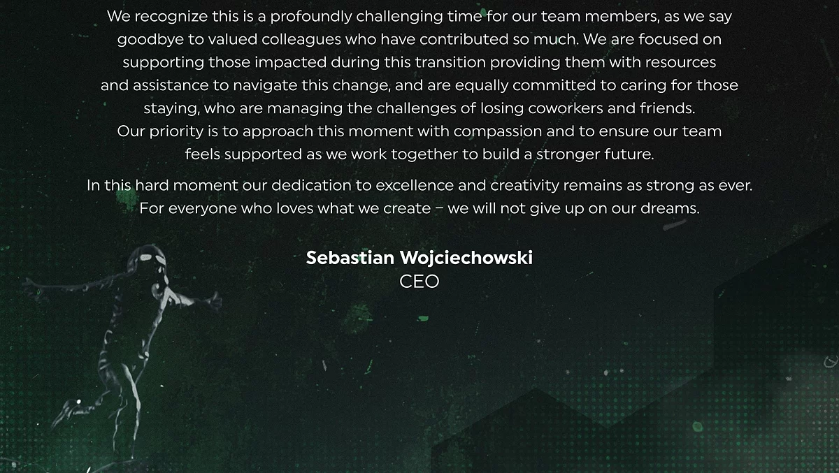 Войцеховски отметил, что рынок видеоигр продолжает развиваться, и компания должна адаптироваться к текущей ситуации. Он также заявил, что компания удвоит свои усилия, заключая новые контракты и сосредотачиваясь на создании собственной независимой игры.