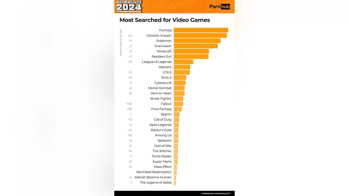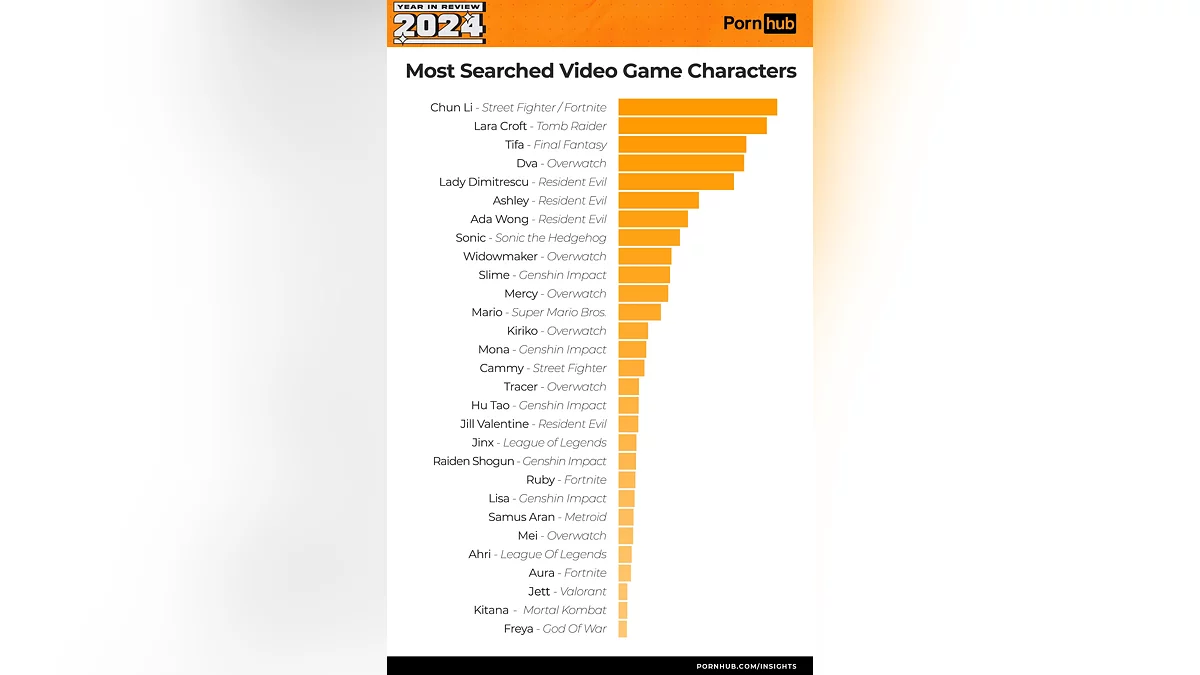 На сайте Pornhub появилась страница с итогами 2024 года. Помимо самых популярных актрис, жанров и запросов в компании поговорили о запросах среди геймеров.
