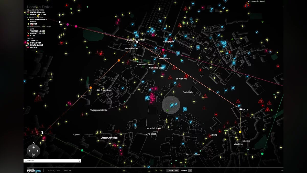 Благодаря WeareData посетители сайта смогут увидеть, что большая часть гипер-связанного мира Watch Dogs существует в реальности и что все действительно связано. WeareData создан для того, чтобы вы смогли взглянуть на реальность и известные города с другой стороны.