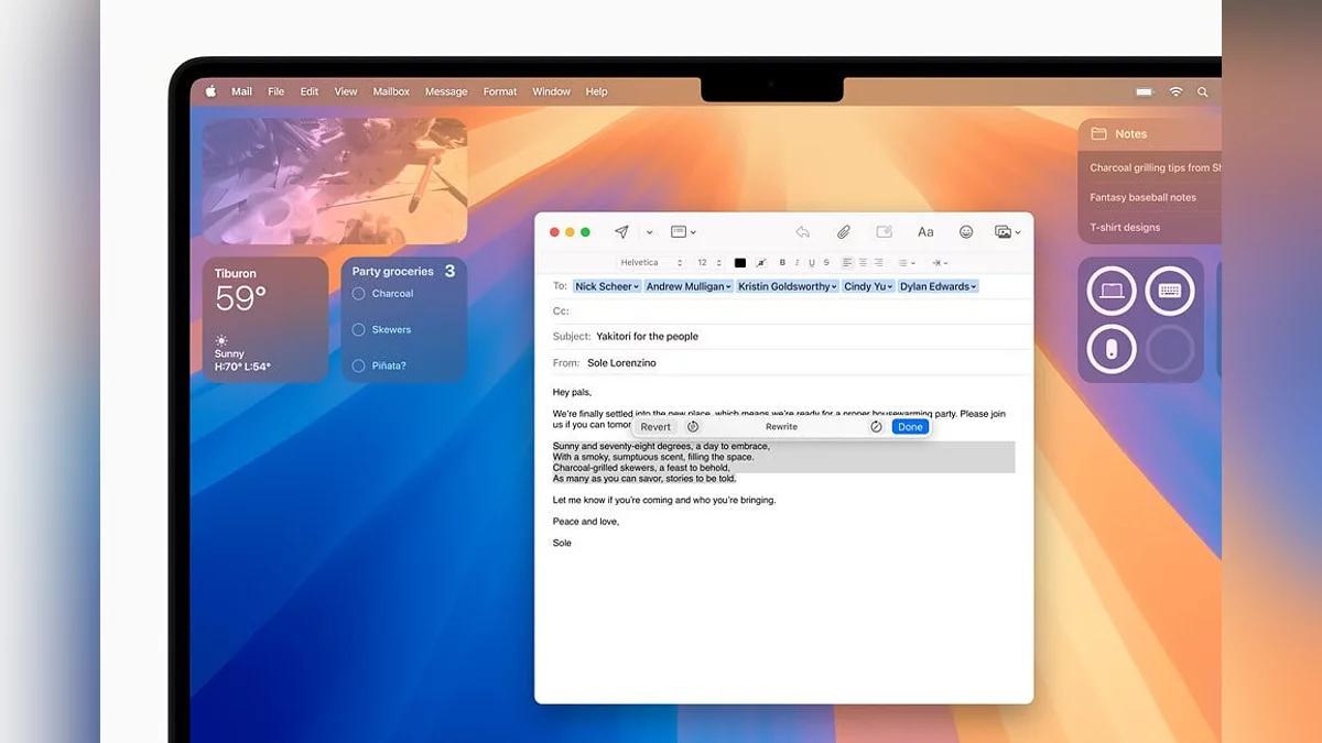 - Describe Your Change — новая опция в инструменте для редактуры текста Writing Tools. Теперь пользователи могут написать, что именно нужно доработать в сообщении.