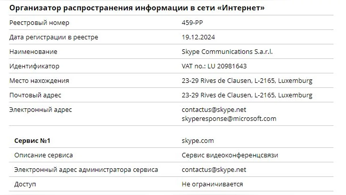 РКН внёс Skype и WhatsApp в реестр организаторов распространения информации